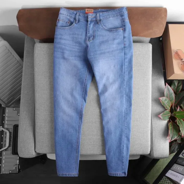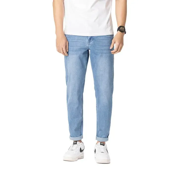 Comfortable slim-fit men’s jeans with stretch fabric, available in multiple colors and sizes for everyday wear.